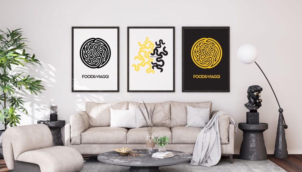 Il nuovo logo FOOD&VIAGGI è stato progettato per essere versatile. La versione principale è monocromatica nera, elegante e raffinata, ideale per integrarsi con fotografie di viaggio e contenuti editoriali. Esiste anche la versione bianca per fondi scuri e una variante con pittogramma giallo su fondo nero.