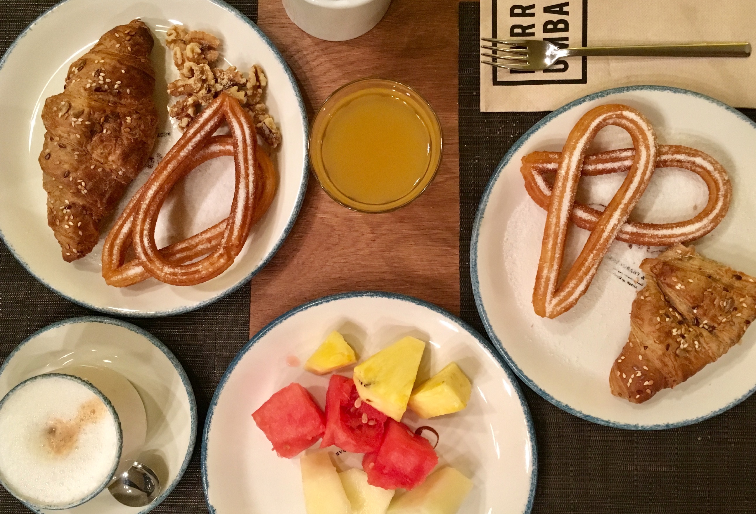 Sorprese e felici come i bambini quando ricevono una caramella in regalo, non siamo solo stupite, siamo estasiate. Di solito iniziamo la giornata con cappuccio e cornetto, ma qui non si può rifiutare il churros liscio con una spolverata di zucchero.